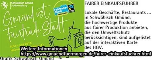 Lokale Geschäfte und Restaurants, die nicht nur hochwertige Produkte bieten, sondern auch faire Produktion und Umweltschutz berücksichtigen? Die gibts auch hier bei uns! Wo genau man in Schwäbisch Gmünd fair gehandelte, plastikfreie und regionale Produkte kaufen kann, erfährt man auf der interaktiven Karte des HGV.